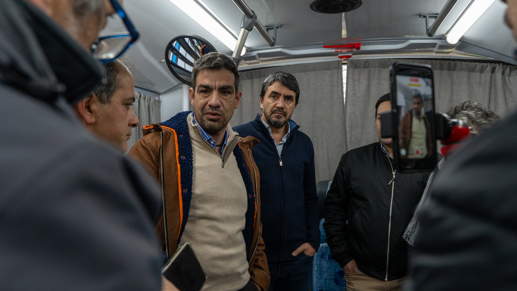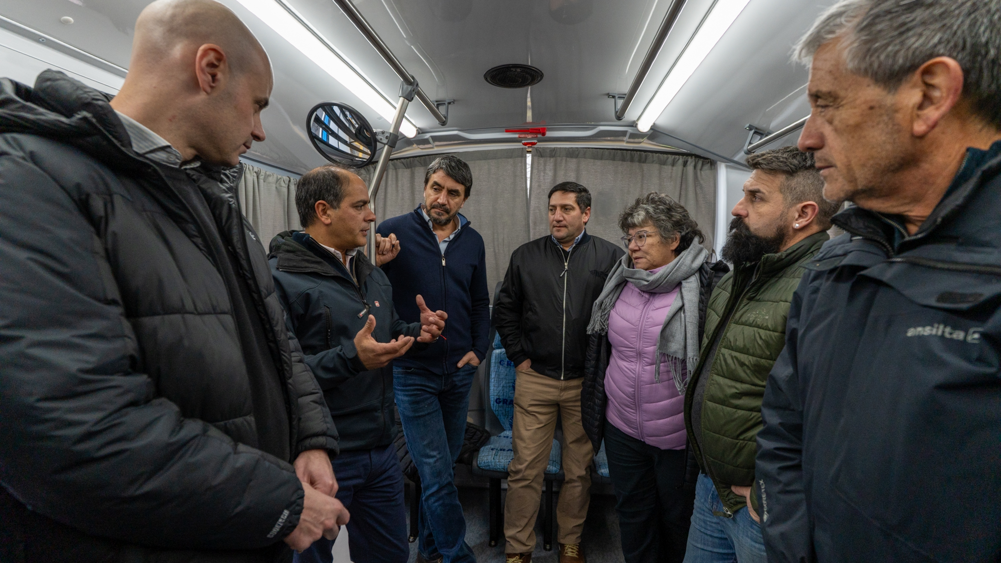 La presentación se realizó dentro de las unidades, internos 9 y 11, estacionados en la Plaza San Martín, a la que asistieron el intendente Carlos Saloniti, los representantes de la empresa Nicolás Cáceres y Gustavo Balmaceda, concejales, funcionarios del Municipio y el delegado en nuestra región de la Unión Tranviarios Automotor (UTA), Marcelo Mas.