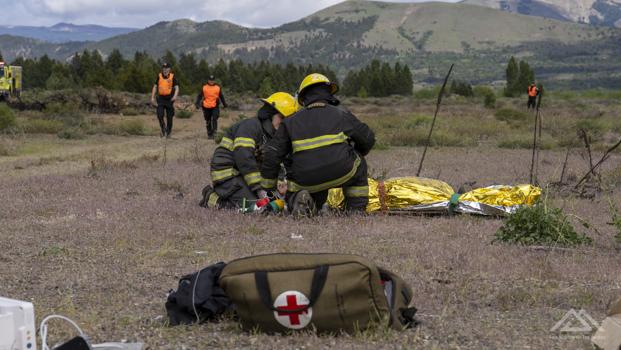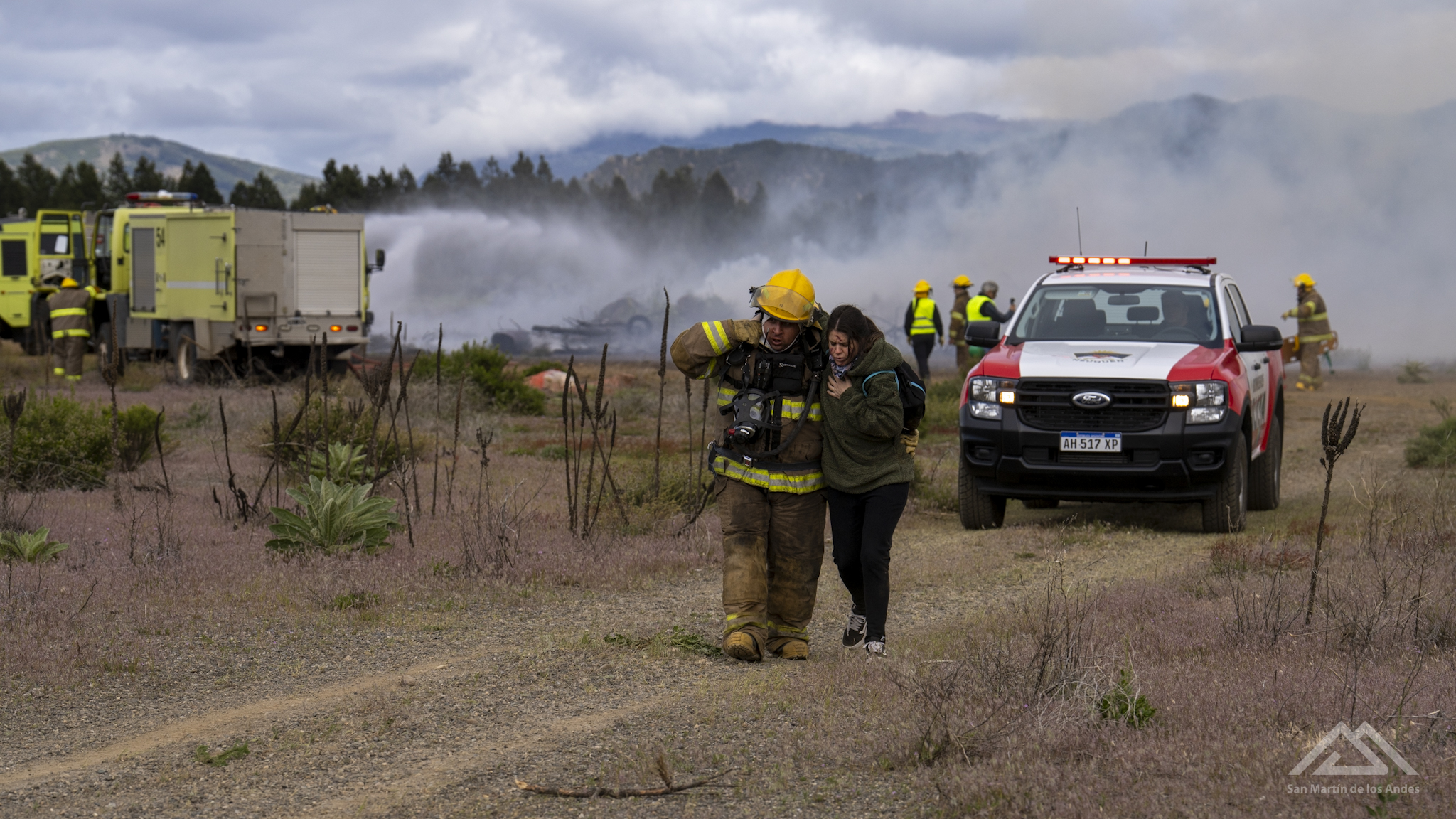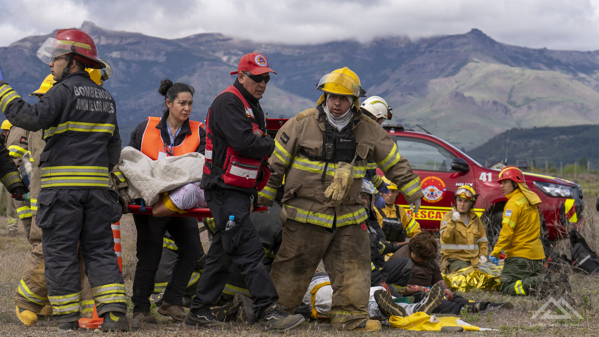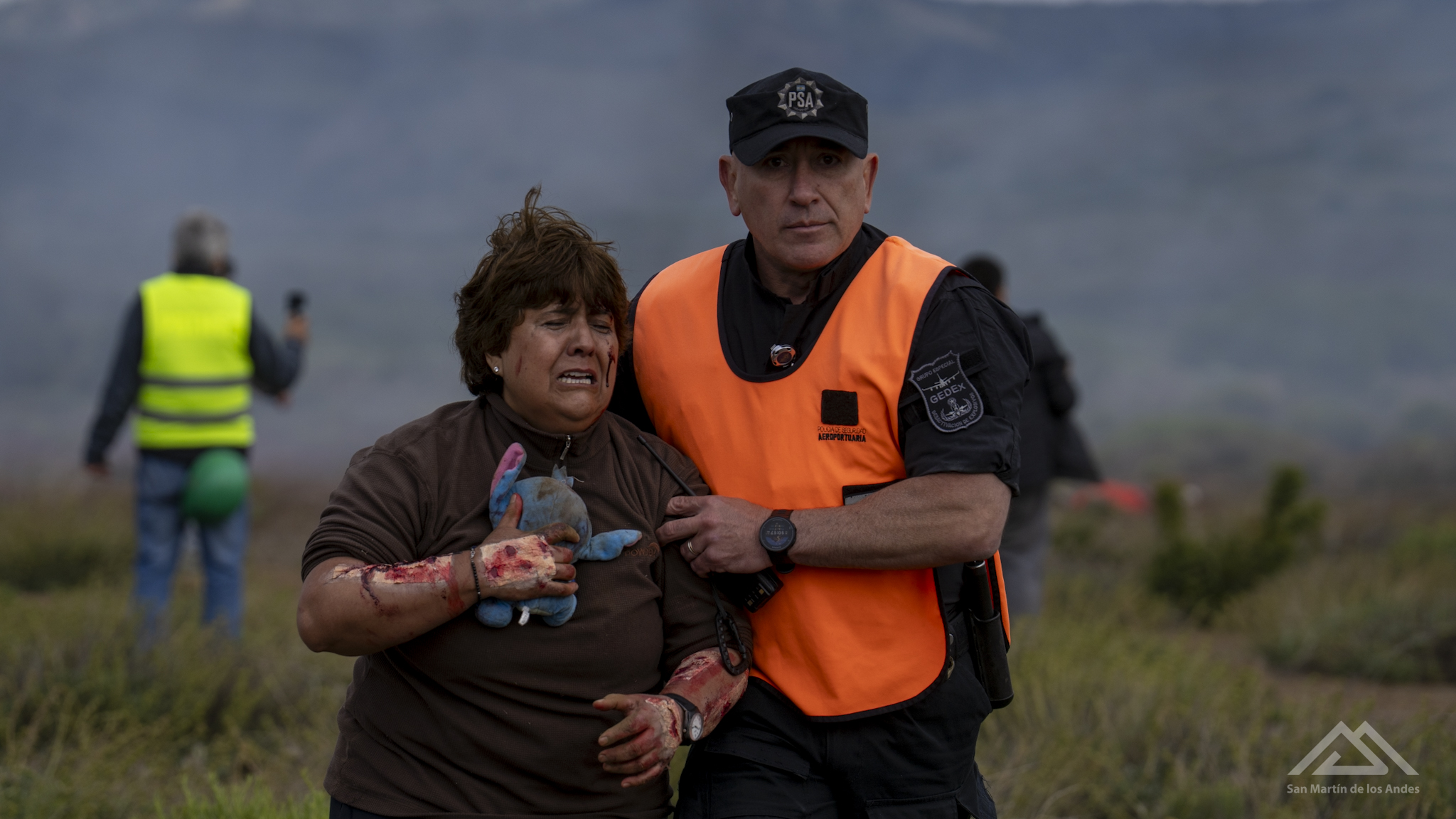 A las 12.20 de este miércoles 19 de noviembre se dio por finalizado el simulacro de accidente aéreo en el aeropuerto Chapelco, del que participaron casi 30 instituciones nacionales, provinciales y municipales y más de 50 actores.